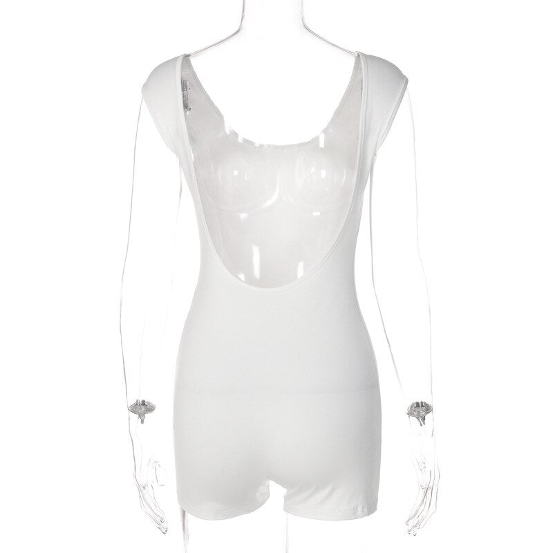 Sexy Backless Rompers Womens Jumpsuit Shorts White One Piece Outfits