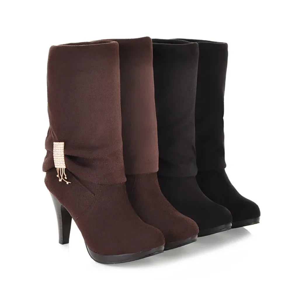 Boots Botas Mujer Knee High Boots Women Autumn Winter Round Toe High Heels Dress Party Long Platform Boots 906