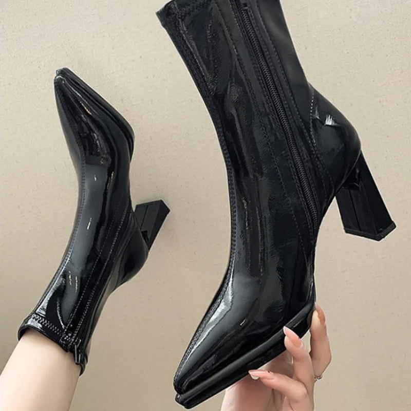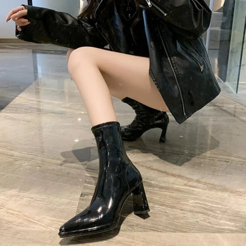 Best Selling Boots Woman Winter 2024 Black Korean Elegant Heeled Autumn New In Women Shoes Pointed Toe Leather Booties Comfortable High Heels