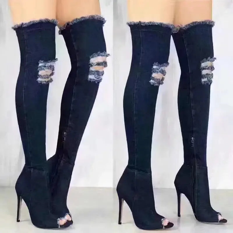 Boots Women Thigh High Boots Winter Women Boots High Heels Women Shoes tassel jean boot ladies shoes Good service 2023