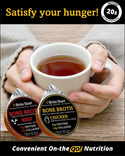 - SATISFY HUNGER - OUR BONE BROTH IS DIET FRIENDLY - Brite Start is Keto friendly, Paleo friendly and Whole 30 friendly. Reduce your cravings, 20 grams of protein to help the body feel fuller for longer. An excellent low calorie, low carb, nutrient rich on-the-go snack. Perfect for Intermittent fasting