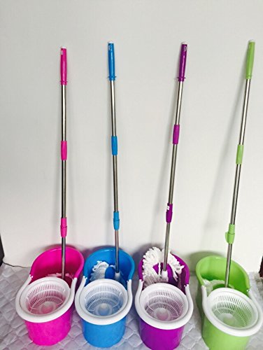 Details: Introductions: Clean the floor in a quick and easy way with our 360° Spin Mop with Bucket & Dual Mop Heads! The mop heads are made of deep-cleaning microfiber that absorbs water and cleans up dust and dirt. Soft fiber won't scratch the floor so you can rest assured to rely on it. Moreover, the mop heads can rotate 360 degrees, allowing you to easily get into those hard-to-reach places. And it comes with a tough bucket that has a built-in wringer for hands-free spin dry. Need I say more? Don't hesitate to buy now! Features: 1. Make floor cleaning quick and easy 2. The mop heads are made of deep-cleaning microfiber 3. Absorb water and clean up dust and dirt 4. 360° rotating heads allow you to easily get into those hard-to-reach places Specifications: 1. Material: Plastic & Fiber Spinning 2. Color: Pink/ Blue/ Green/ Purple 3. Mop Dimensions: (52.75 x 1.22)" / (134 x 3.1)cm (L x Dia) 4. Bucket Dimensions: (17.99 x 10.31 x 8.27)" / (45.7 x 26.2 x 21)cm (L x W x H) 5. Weight: 3.20 lbs / 1.45 kg Package Includes: 1 x Bucket 1 x Mop Rod 2 x White Cotton Mop Heads 1 x Circular Disc