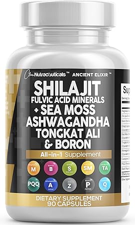 Clean Nutraceuticals Shilajit Supplement 10,000mg with Sea Moss 6000mg, Ashwagandha 6000mg, Tongkat Ali, Boron, Magnesium - Fulvic Acid Capsules for Men - 90 CountBrand: Clean Nutraceuticals