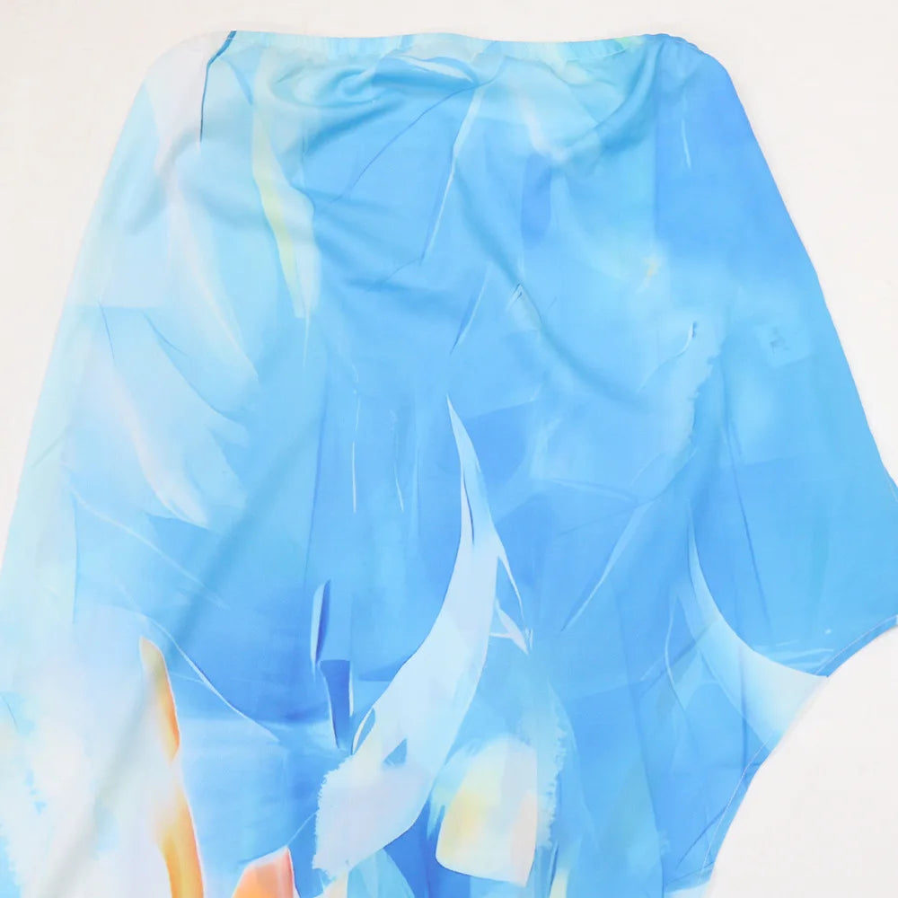 CM.YAYA Beach Holiday Print Women's Set Strapless High Low Blouse Top and Pants Suit 2025 Street Summer Two 2 Piece Sets Outfit