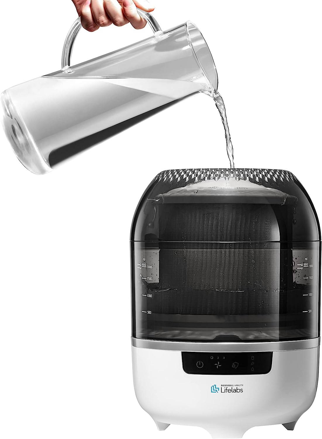 DH Lifelabs | Aaira Mini Hydrating Air Purifiers | Eliminates 99.9% of Bacteria Viruses Mold | HOCl Cleans Moisturizes Air Odor Eliminator for Smokers | Coverage 323 Sq Ft for Large Room Bedroom Home Mini GreyHOCl PURIFIES & HYDRATES AIR: Hypochlorous acid (HOCl) is a naturally occurring molecule created using non-iodized salt, water, and electrolysis to clean, deodorize and moisturize dry air.