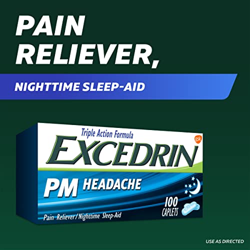 Excedrin PM Sleep Aid with Headache Relief Caplets for Nighttime Headaches and Sleeplessness - 100 Count