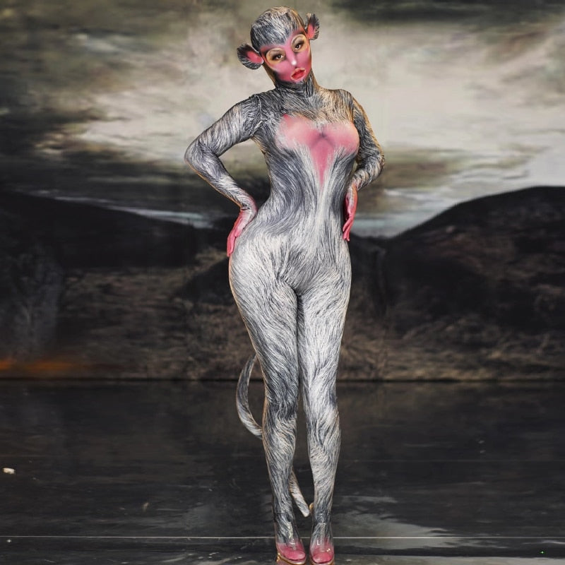 fashion Halloween Costumes Cosplay Stretch Jumpsuit club Party Role Play Dance Performance Stage 3D print Animal acting costume
