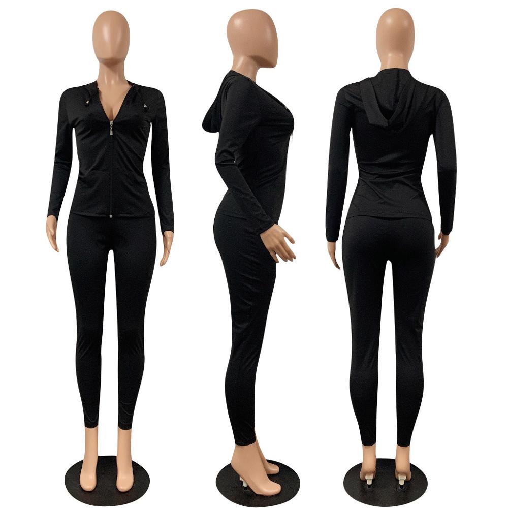 Fashion Hooded Two Piece Set Jogging Femme Zipper Top + Pants Suit Sportwear Tracksuit Women Outfits Solid 7 ColorSPECIFICATIONS