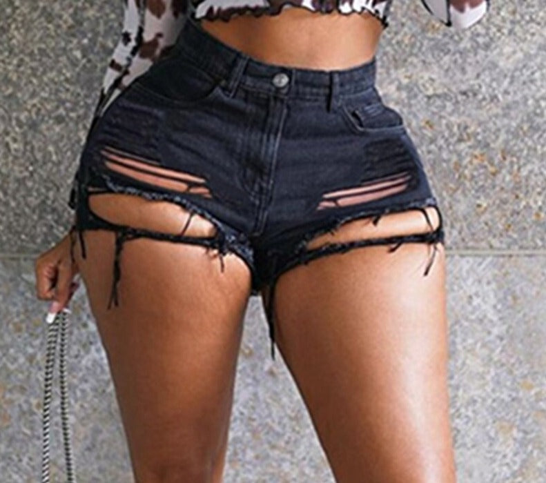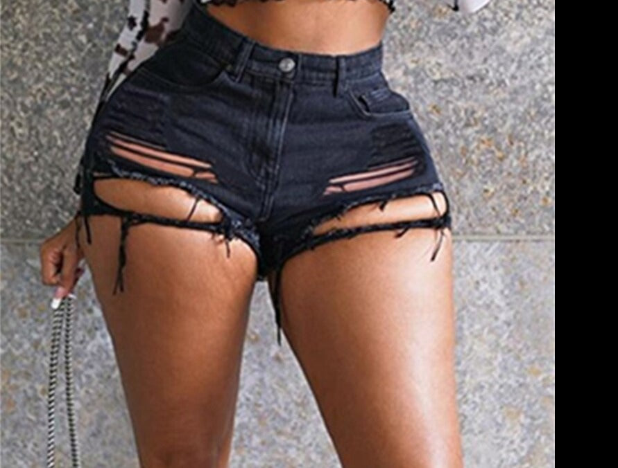 Fashion Sexy High Waist Ladies Denim Shorts 2021 Summer New Women's Ripped Hollow Out Hole Streetwear Shorts Jeans