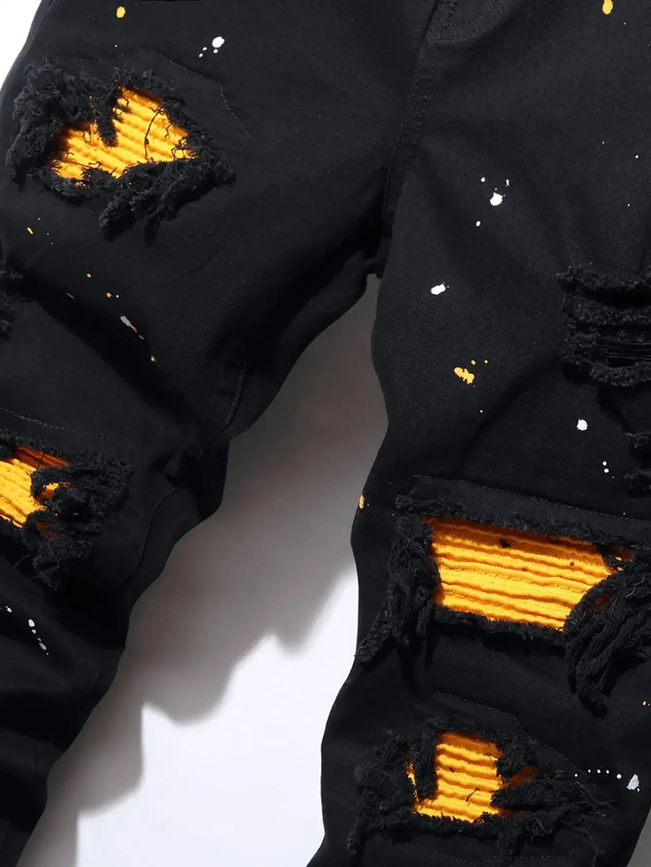 Fashion Street Style Ripped Skinny Jeans Men Vintage wash Solid Denim Trouser Mens Casual Slim fit pencil denim Pants hot sale