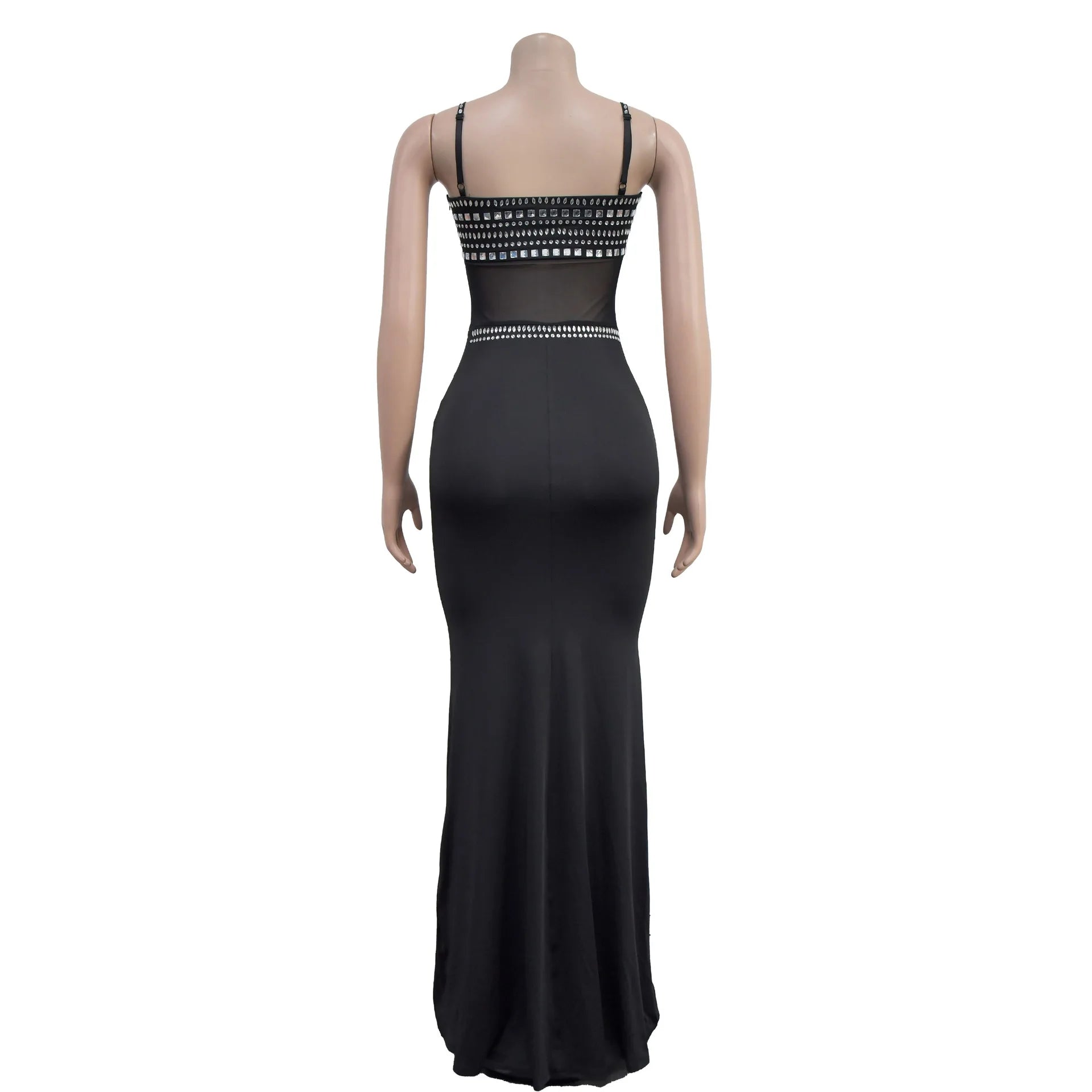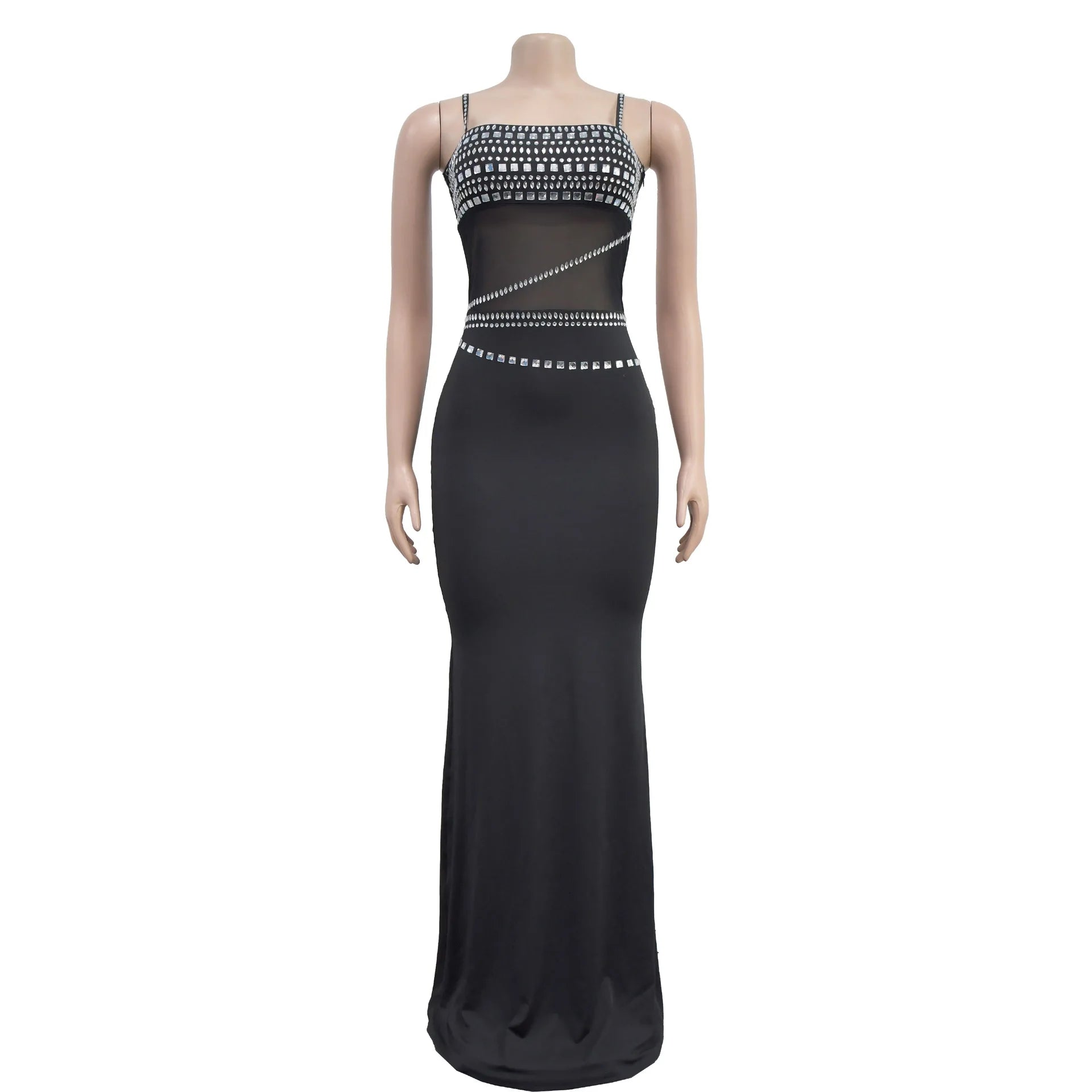Best Selling Fashion Women's Hot Diamond Mesh Dresses Summer New Sexy Transparent Lace Party Elegant Female Maxi Dress 2025