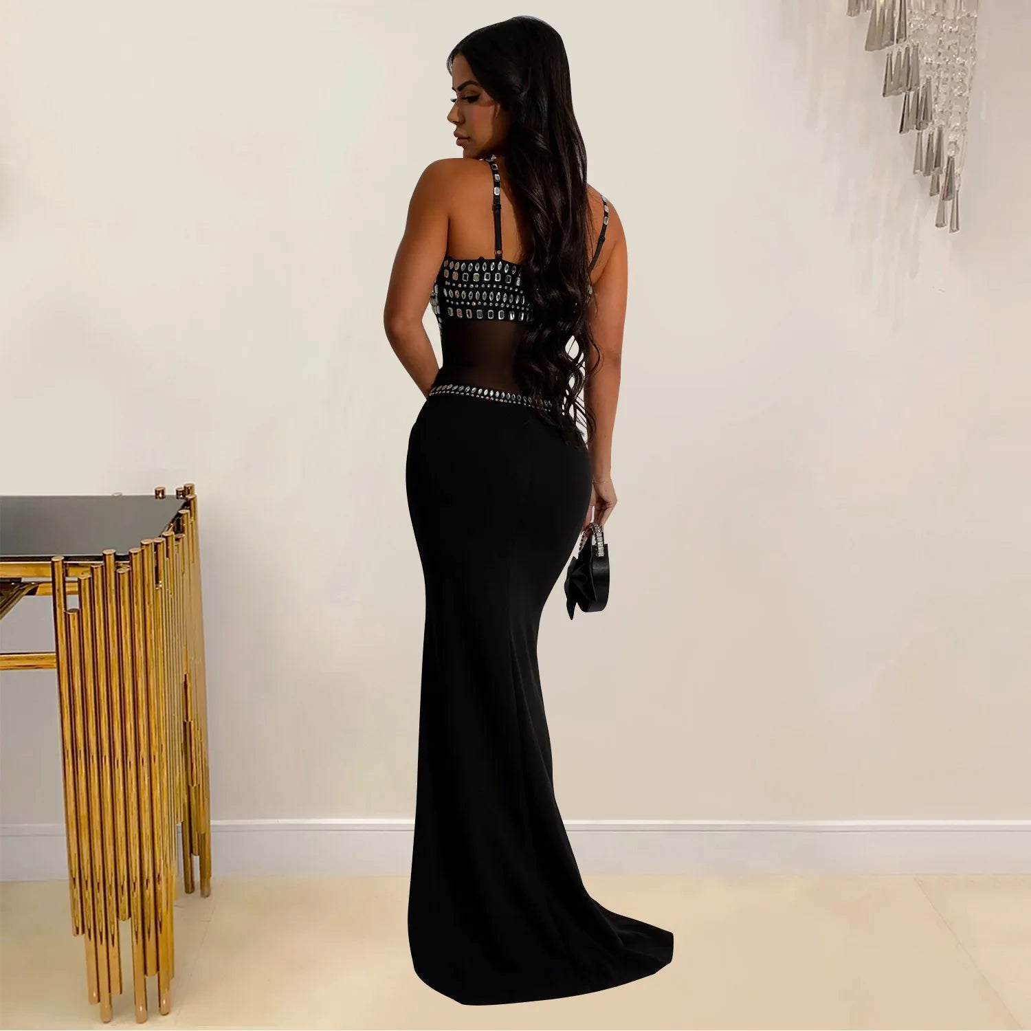 Fashion Women's Hot Diamond Mesh Dresses Summer New Sexy Transparent Lace Party Elegant Female Maxi Dress 2025