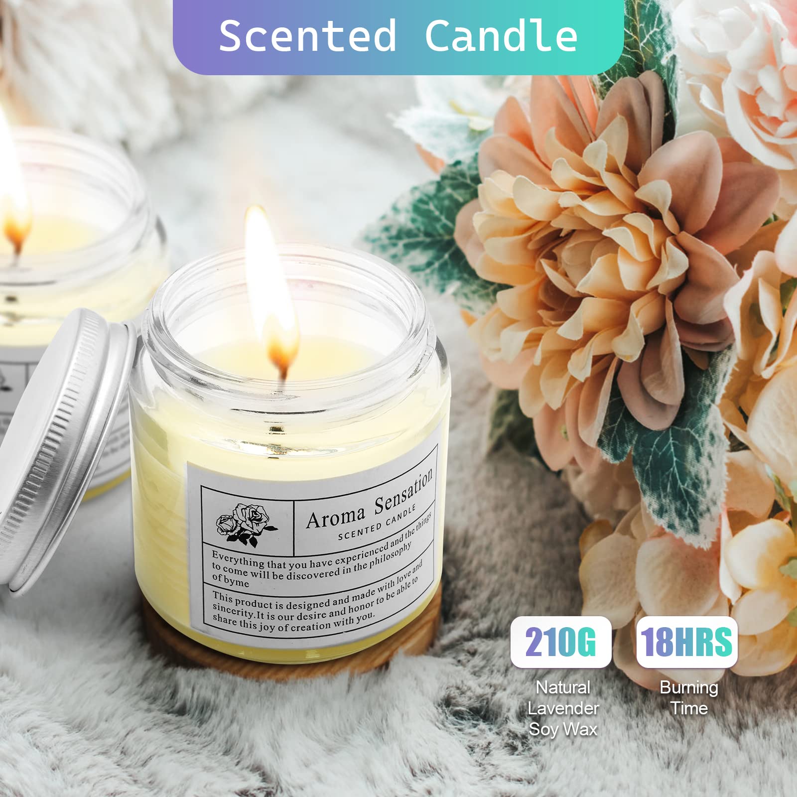 - 🎁 【 Natural Lavender Scented Candle】 Our hand poured smokeless candles have a special soy wax blend and natural lavender essential oils, which ensures that the scent will last the entire burn. Light a scented candle in the bath and the stress of the day will be released in a fresh and elegant aroma. Lavender also has a soothing and sleep-aiding effect, giving her a better sleep.