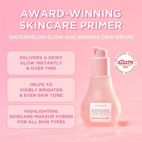 Glow Recipe Niacinamide Dew Drops - Skin Care Facial Serum & Illuminating Makeup Primer for Dewy, Glowing Skin - Hyaluronic Acid Hydrating Face Serum for Brightening, Plumping, & Highlighting (15ml)Brand: Glow Recipe