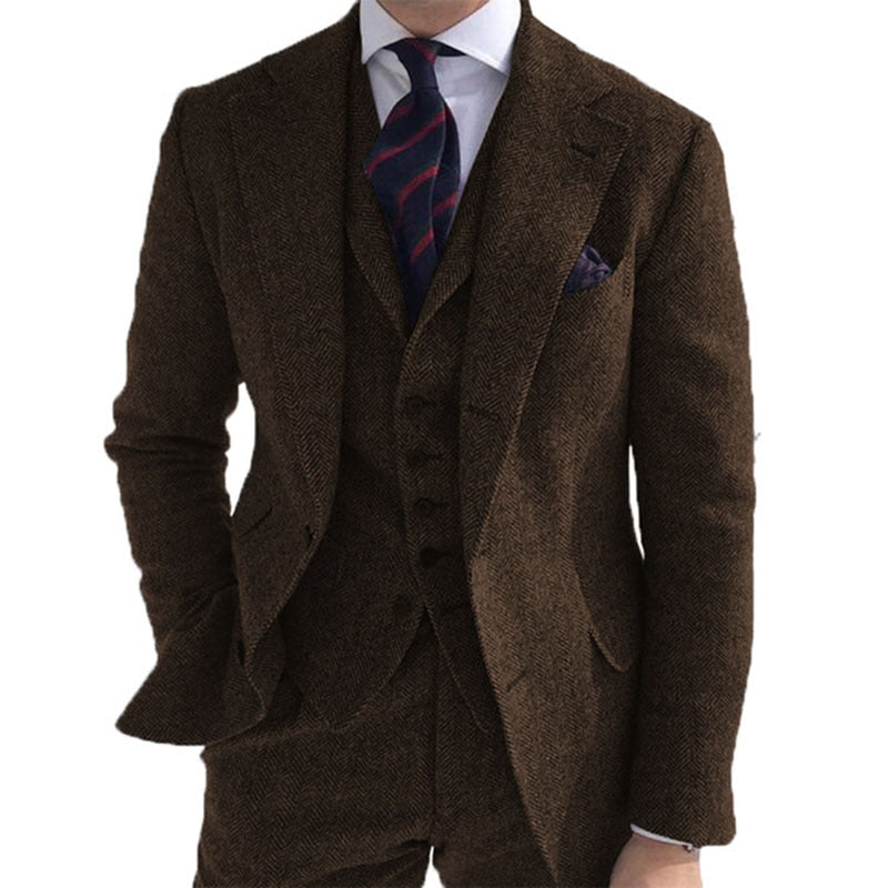 Gray Wool Tweed Winter Men Suit's For Wedding Formal Groom Tuxedo Herringbone Male Fashion 3 Piece (Jacket +Vest +Pants+Tie)SPECIFICATIONS