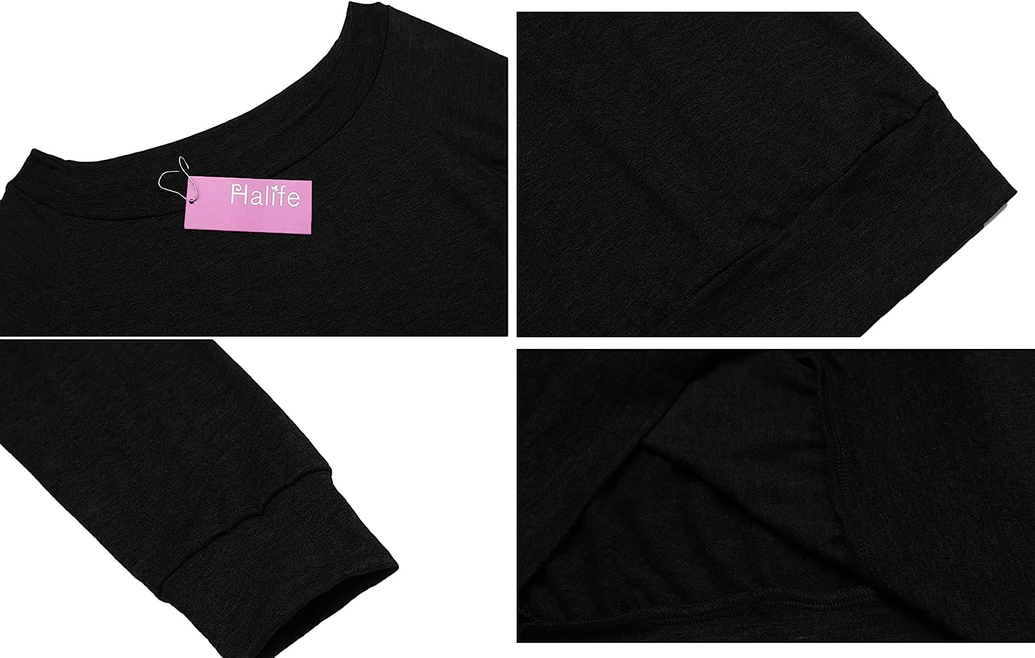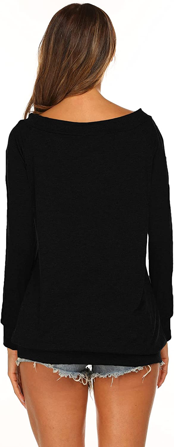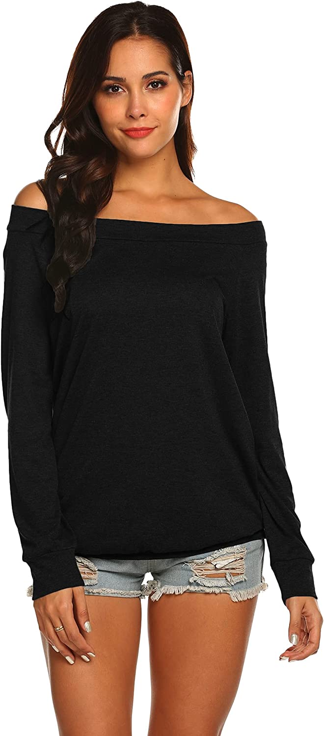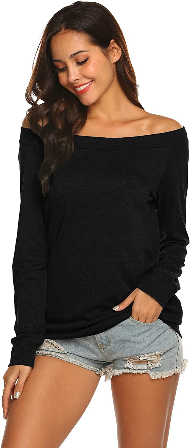 Halife Women's Long Sleeve Boat Neck Off Shoulder Blouse Tops Large Black