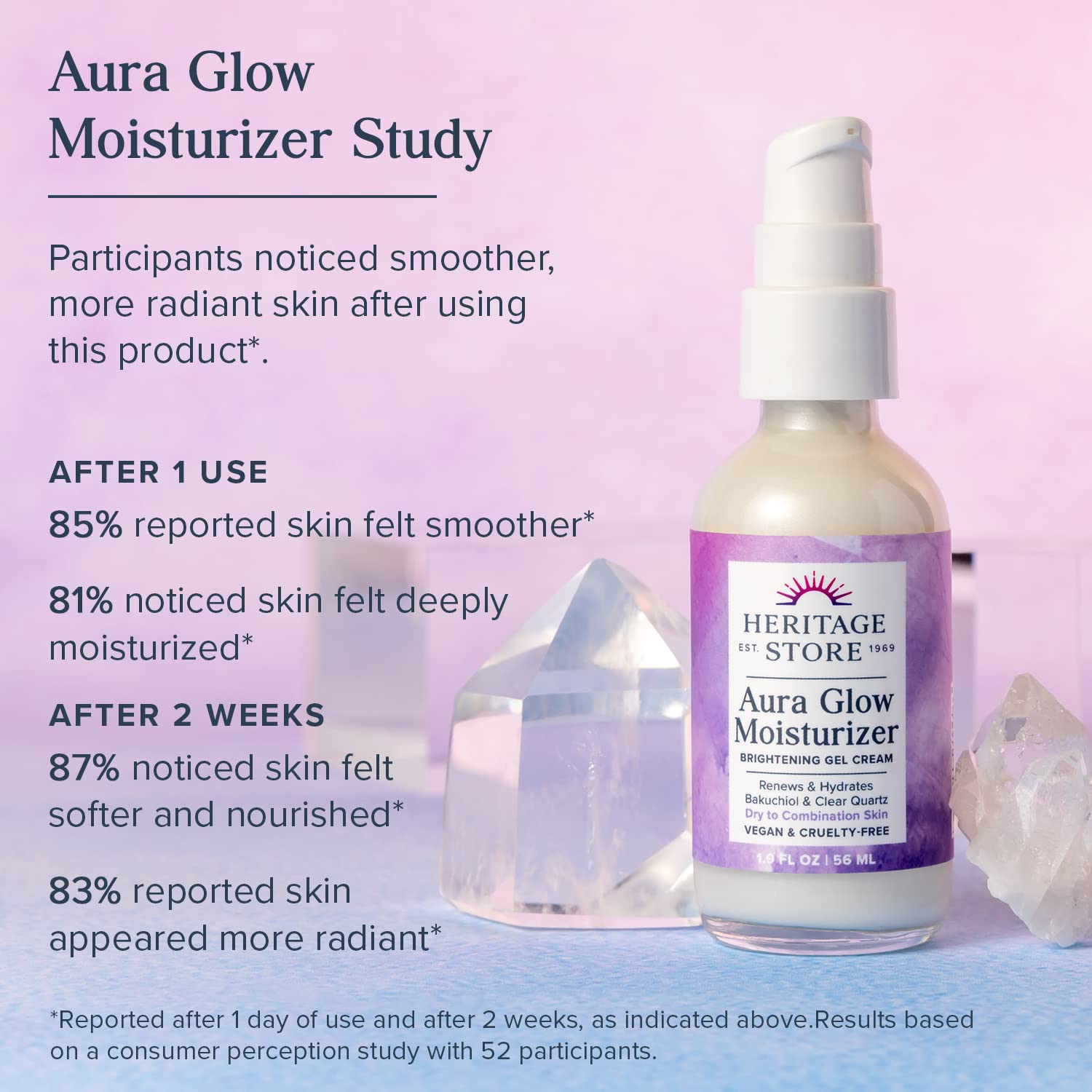 HERITAGE STORE Aura Glow Facial Moisturizer, Brightening Gel Cream, Dry Combination Skin Care, Hypoallergenic, Renews & Firms Skin’s Appearance, Adds Radiance w/Bakuchiol & Clear Quartz, Vegan 1.9oz