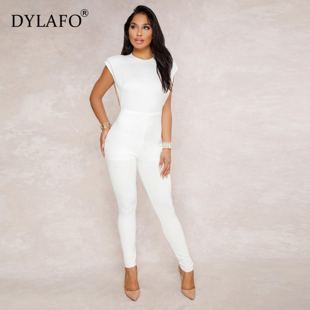 Hot Sale Pearl Chain Sexy Backless Women Sleeveless Skinny Bodycon Rompers