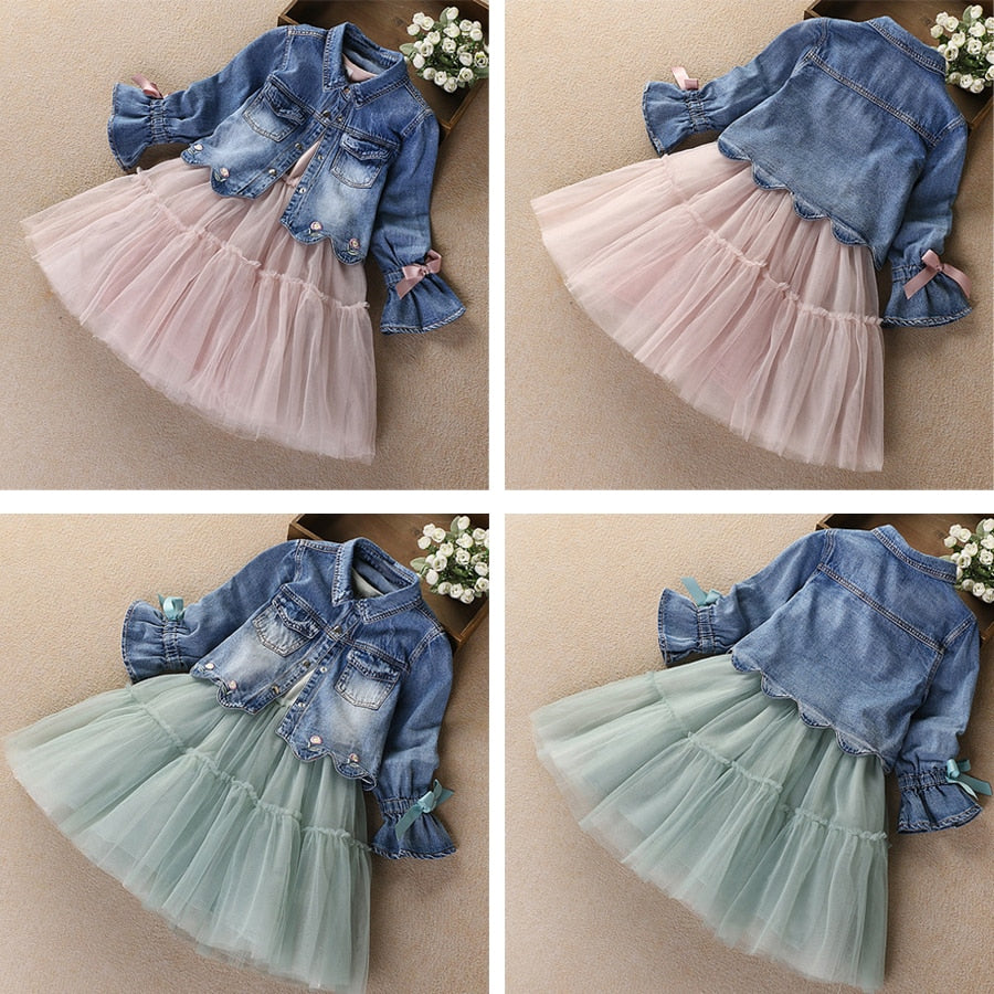 IYEAL Newest Spring Autumn Baby Girls Clothes Sets Denim Jacket+TUTU Dress 2 PCS Kids Suits Infant Children Clothing Set