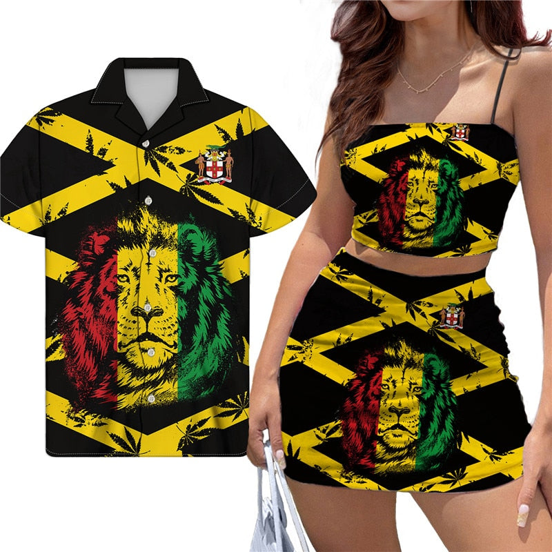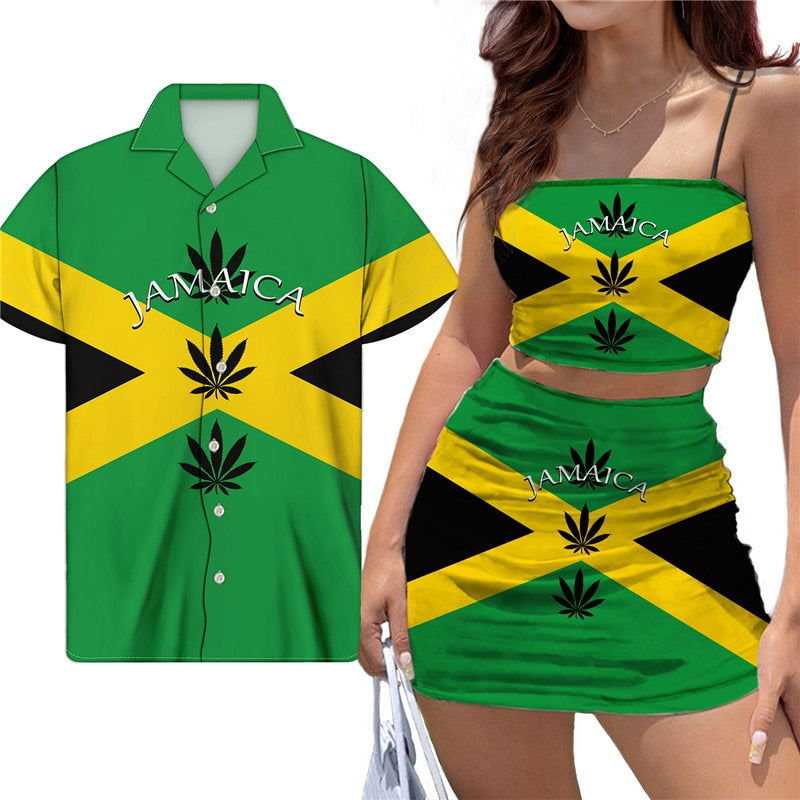 Jamaica Flag Print Women Sexy Halter Top Mini Dress Couple Clothes For Club Party Loose Men Shirt Match Girls Bodycon Skirt Set