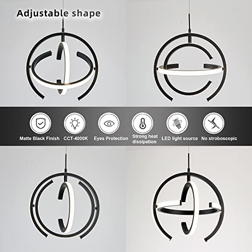 - 【Modern Design】The modern chandelier is black with 3 rings and its shape is variable that the ring can be rotated 175 degrees. This LED chandelier is suitable for dining room, bedroom, kitchen, etc.