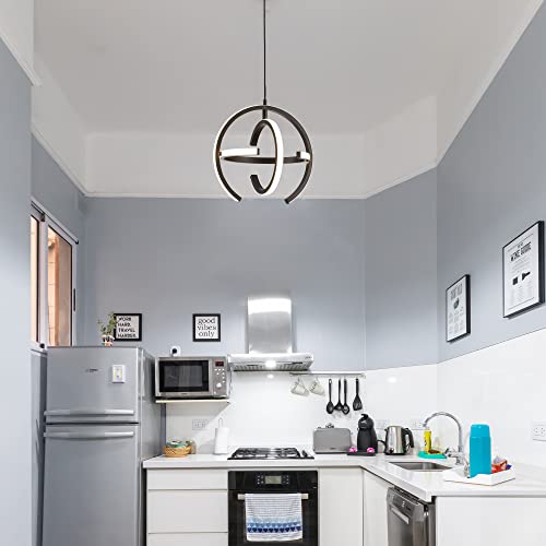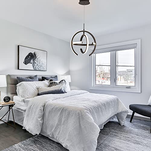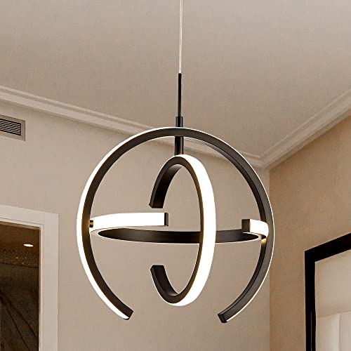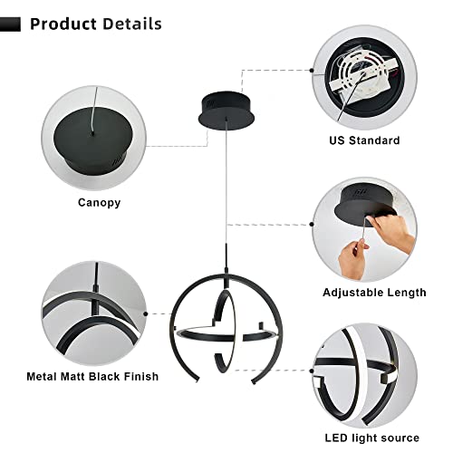 Kinglong Black Modern LED Chandelier, Globe Pendant Light Round 4000K Hanging Light Fixtures for Dining Room Kitchen Island Bedroom Living Room Foyer StairwayBrand: Kinglong