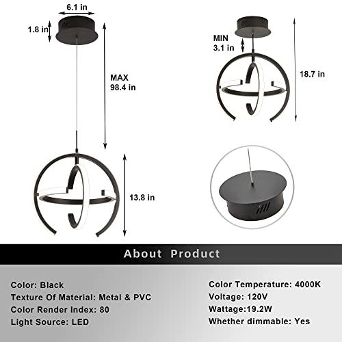 - 【Energy Saving Lighting】19.2W LED pendant light is natural white light 4000k dimmable, and you can choose different brightness to light up your life. PLEASE NOTE STANDARD DIMMER SWITCHES IS NOT INCLUDED.