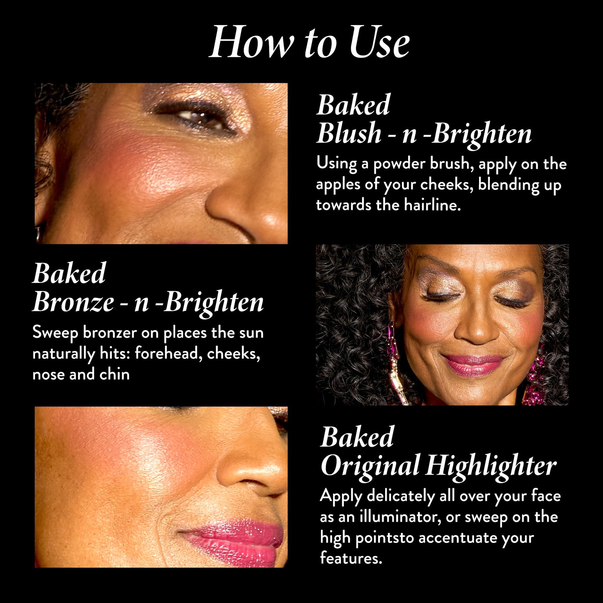 - INCLUDES BLUSH, BRONZER, HIGHLIGHTER, AND EYESHADOW: These goodies are truly the best of our best! This all-in-one full face palette is the perfect introduction to our famous baked beauty. It includes a blush, bronzer, highlighter and six nude eyeshadows.
