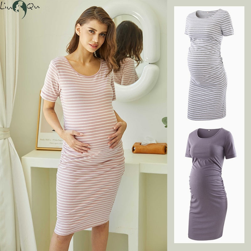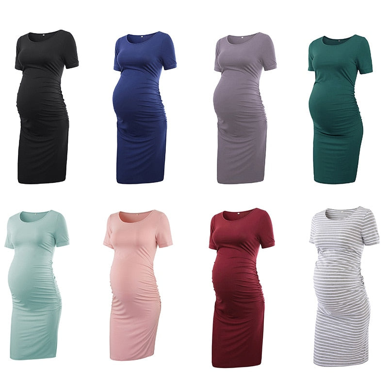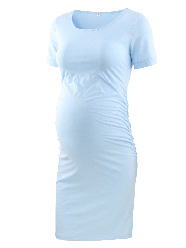 Liu&Qu Maternity Dresses Women Side Ruched Pregnany Dress Bodycon Pregnant Clothes Casual Mama Short Sleeve Wrap Baby Showers