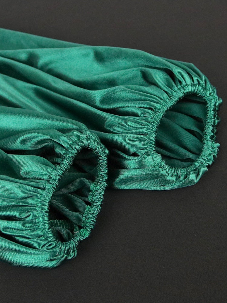 Long Sleeve Green Dresses Bodycon Elastic Satin Smocked Midi Dress Elegant Big Size Shiny Evening Christmas Party Church OutfitsSPECIFICATIONS