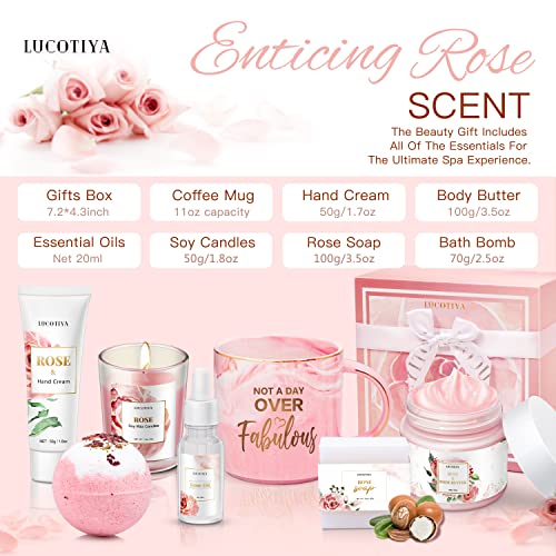 LUCOTIYA Birthday Gifts for Women Best Spa Gifts Baskets Box for Her Wife Mom Best Friend Mother Grandma Bday Bath and Body Kit Sets Self Care Present Beauty Products Package Rose ScentBrand: LUCOTIYA