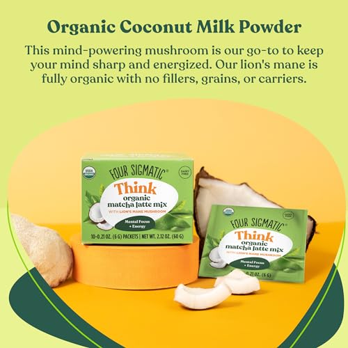 Details: Four Sigmatic Matcha Latte, Organic Instant Matcha Latte Mix with Lion's Mane Mushroom & Coconut Milk Powder, Supports Productivity & Focus No Sugar or Dairy, pack of 10