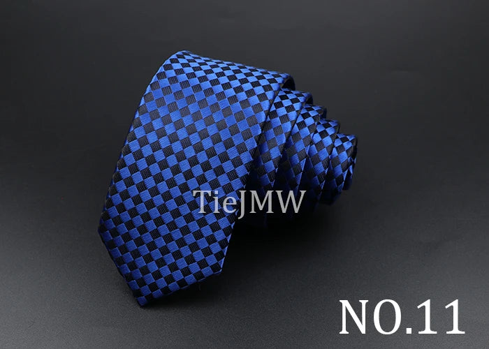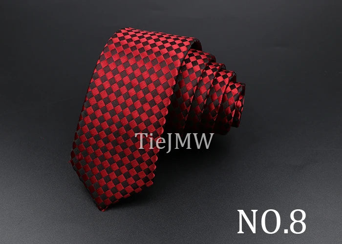 Men's Classic Skinny Stripe Necktie Red Navy Blue Ties Jacquard Woven Solid Plaid Dots Tie Daily Wear Cravat Wedding Party Gift