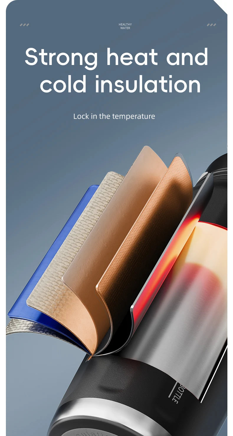 One Button Open Water Bottle with Lifting Rope, Large Capacity Stainless Steel Thermos Bottle,Outdoor Sport Vacuum Flasks