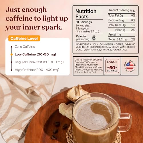 - 😋 SMOOTH AND DELICIOUS LOW-CAFFEINE ALTERNATIVE – Perfect for those looking to reduce caffeine intake without sacrificing flavor, our mushroom coffee instant brew offers an exciting taste to awaken your senses and keep you going throughout the day.