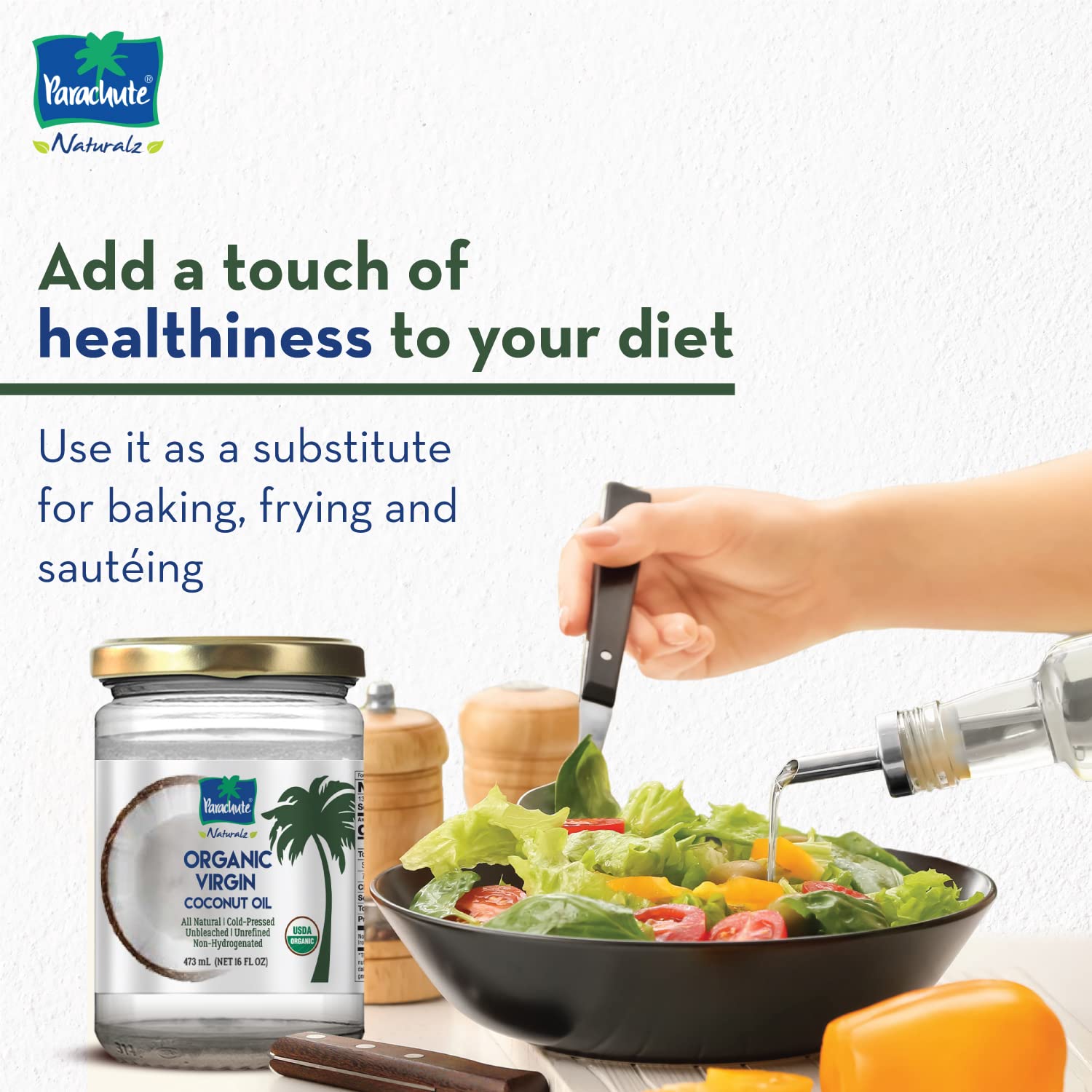 Parachute Naturalz Virgin Coconut Oil | 100% Organic Cooking Oil, Hair Oil and Skin Oil | Cold Pressed | USDA Certified |16 Fl. Oz
