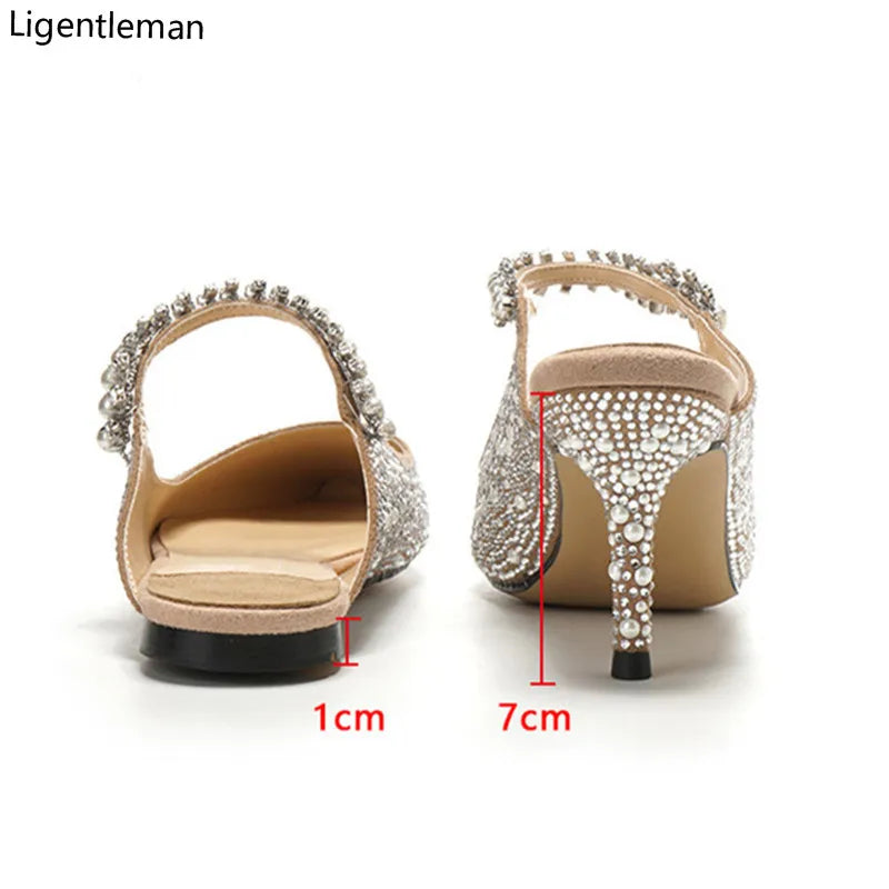 Pearl Slippers Shoes Women Basic 2023 Summer Flock Shiny Rhinestones Pointed Toe Flats Pearl Slippers Fashion Party Women ShoesSPECIFICATIONS