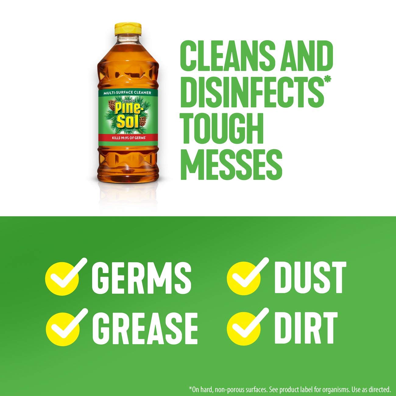 Details: Pine-Sol Multi-Surface Cleaner, Original, helps you keep your entire house clean with a Classic Pine scent. This multi surface cleaner cuts through the toughest stains, grease and grime. Use Pine-Sol Multi-Surface Cleaner to keep your entire home, from the kitchen to the bathroom to the garage, sparkling and smelling clean. That's the power of Pine-Sol.