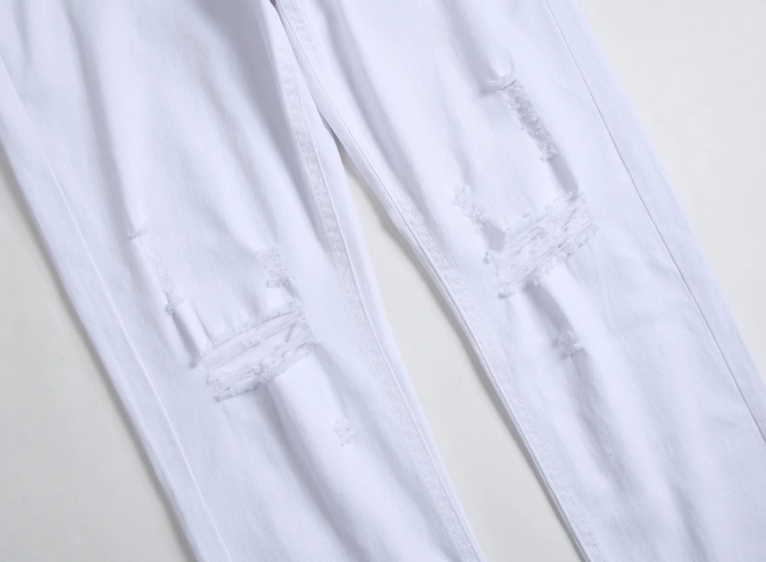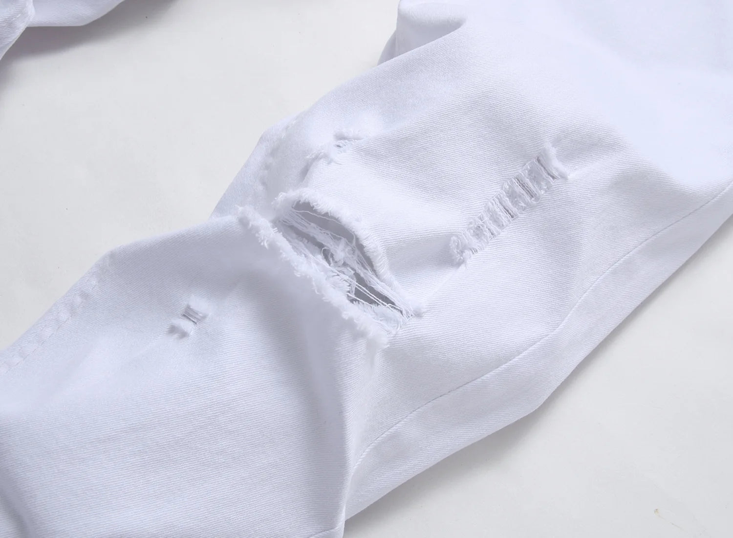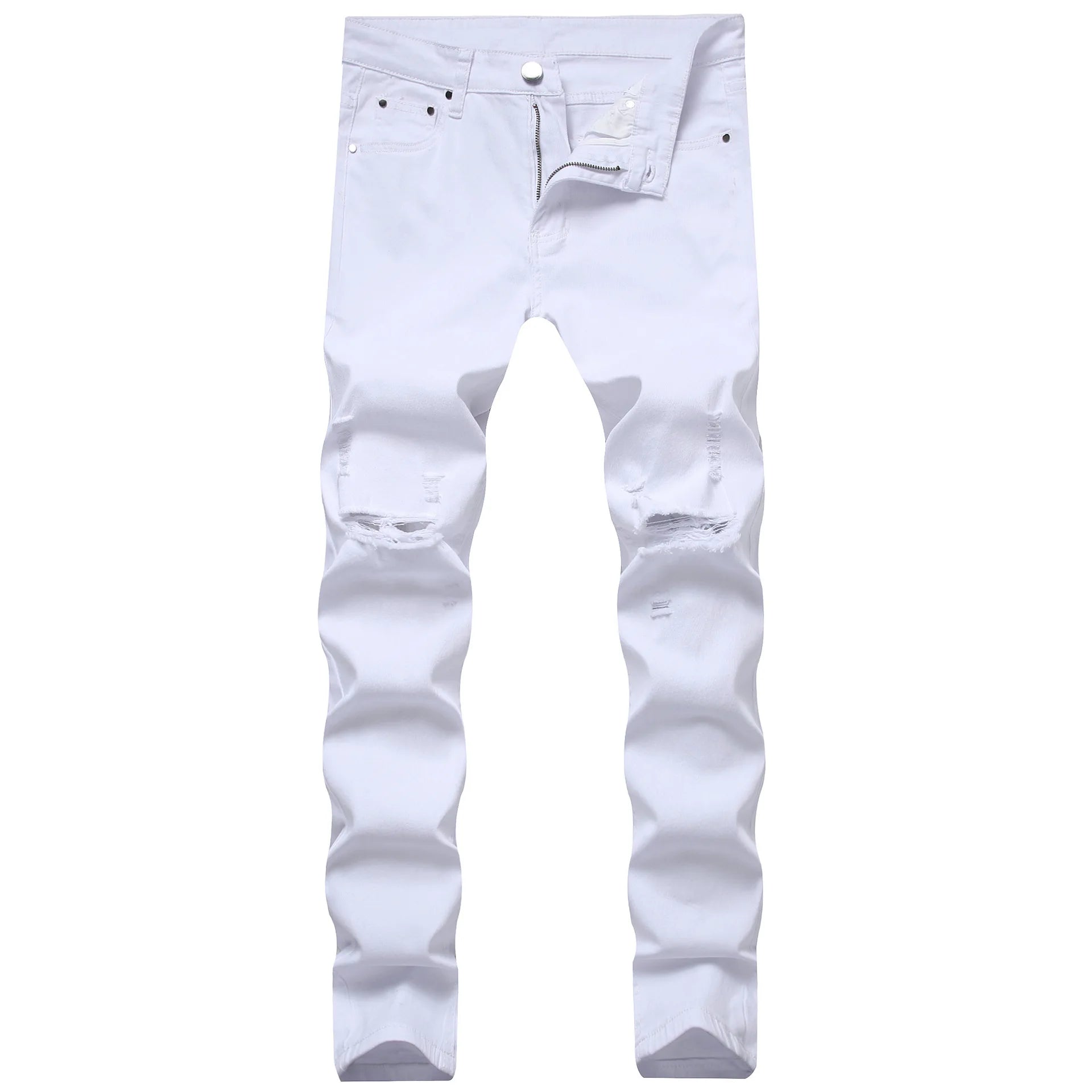 Punk Street Style Ripped Skinny Jeans Men Vintage Wash Solid Denim Trouser Mens Casual Slim Fit Pencil Denim Holes Pants 2024