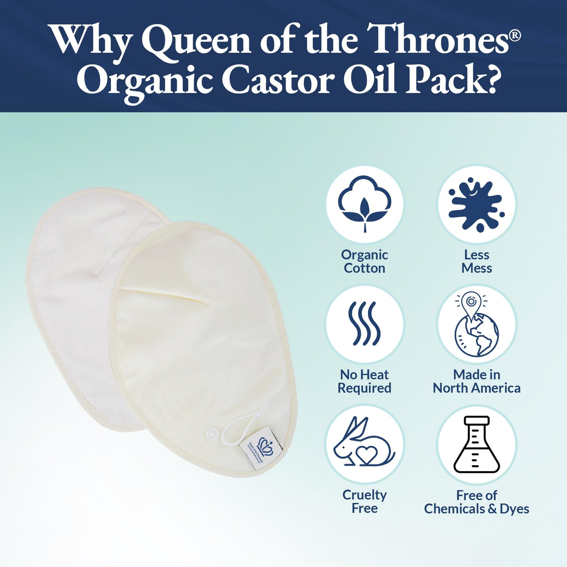Details: QUEEN OF THE THRONES Castor Oil Pack for Chest (Large) - Heatless, Less-Mess, Reusable - Organic Cotton Flannel, Comfort Fit, Soft Straps & Naturopathic Doctor Designed (Castor Oil Sold Separately)