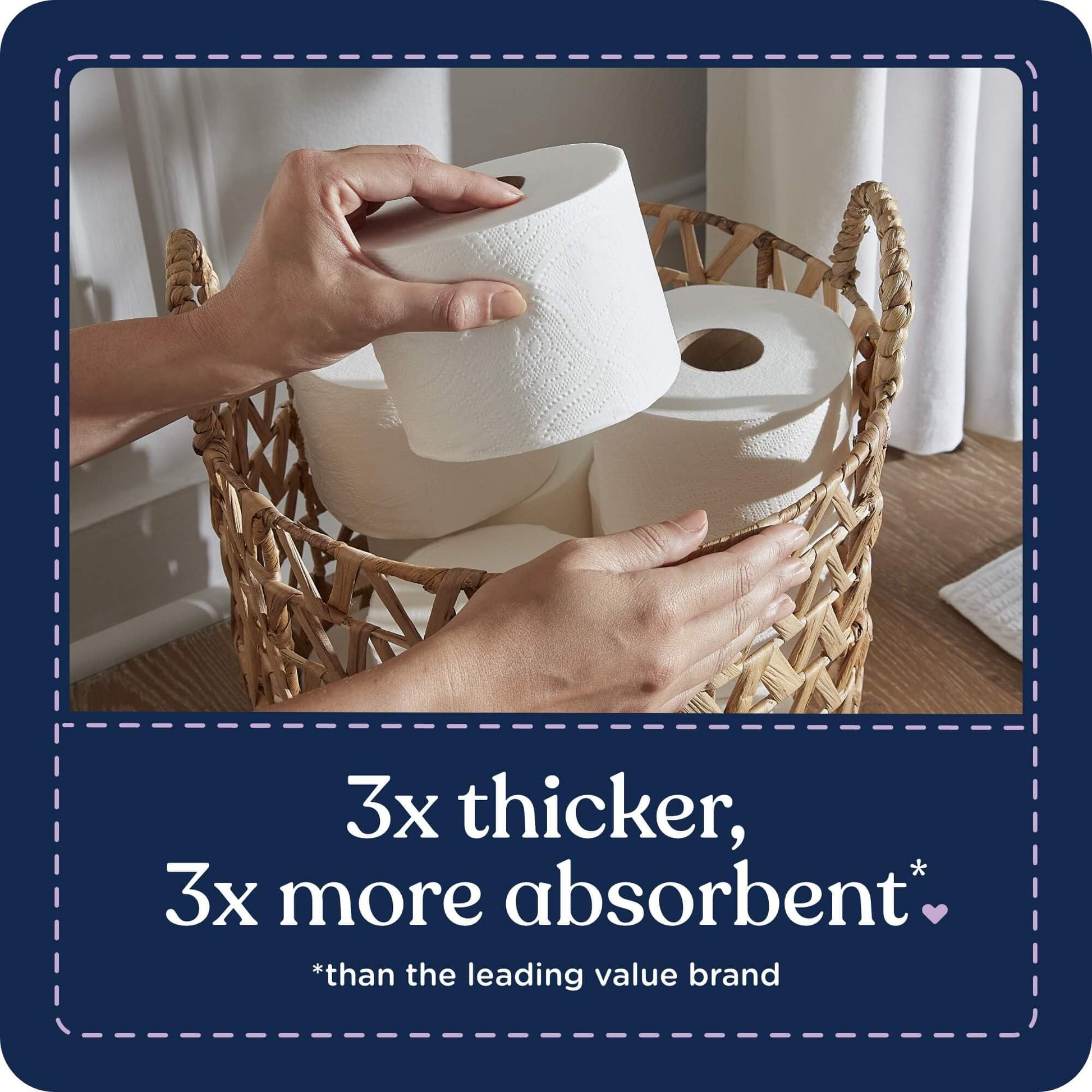 - Luxuriously soft toilet paper that’s 3X thicker and 3X more absorbent than the leading value brand.