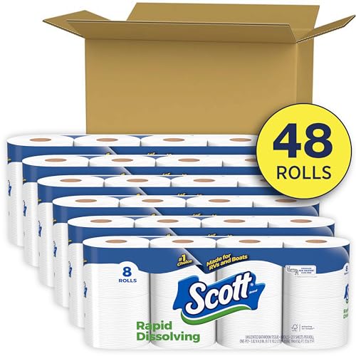 Scott Rapid-Dissolving Toilet Paper, 48 Double Rolls, Sustainable, Septic-Safe, Toilet Paper
