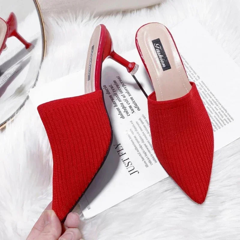 Shoes for Women 2025 Spring/Summer New High-heeled Slippers Women's Fashion Baotou Thin Heels Pointed Lazy Half Drag Sandals