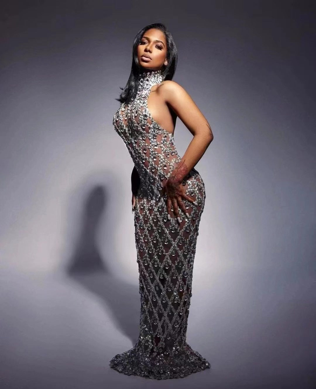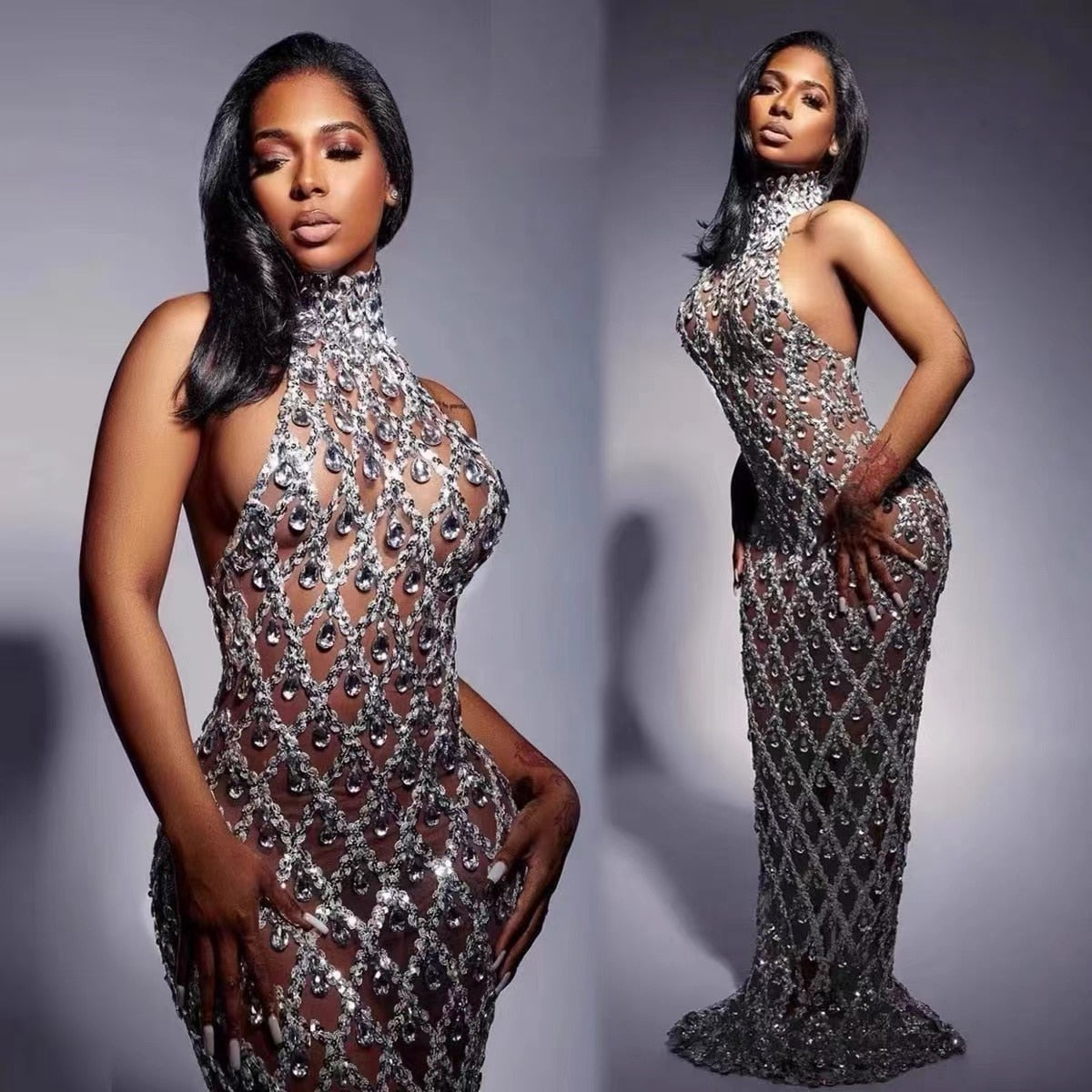 Silver Stones dress Mermaid Bodycon Halter Sleeveless Ballroom Evening Festival Clothing Rhinstone Prom Special Ocassion ShowSPECIFICATIONS