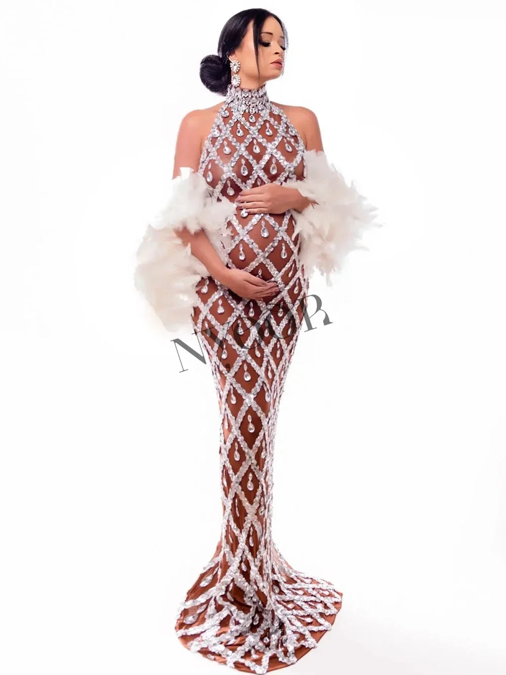Sparkly Rhinestones Sleeveless Long Dress Elegant Dark Mesh Celebrate Evening Wedding Prom Gown Birthday Dress Photograph Wear