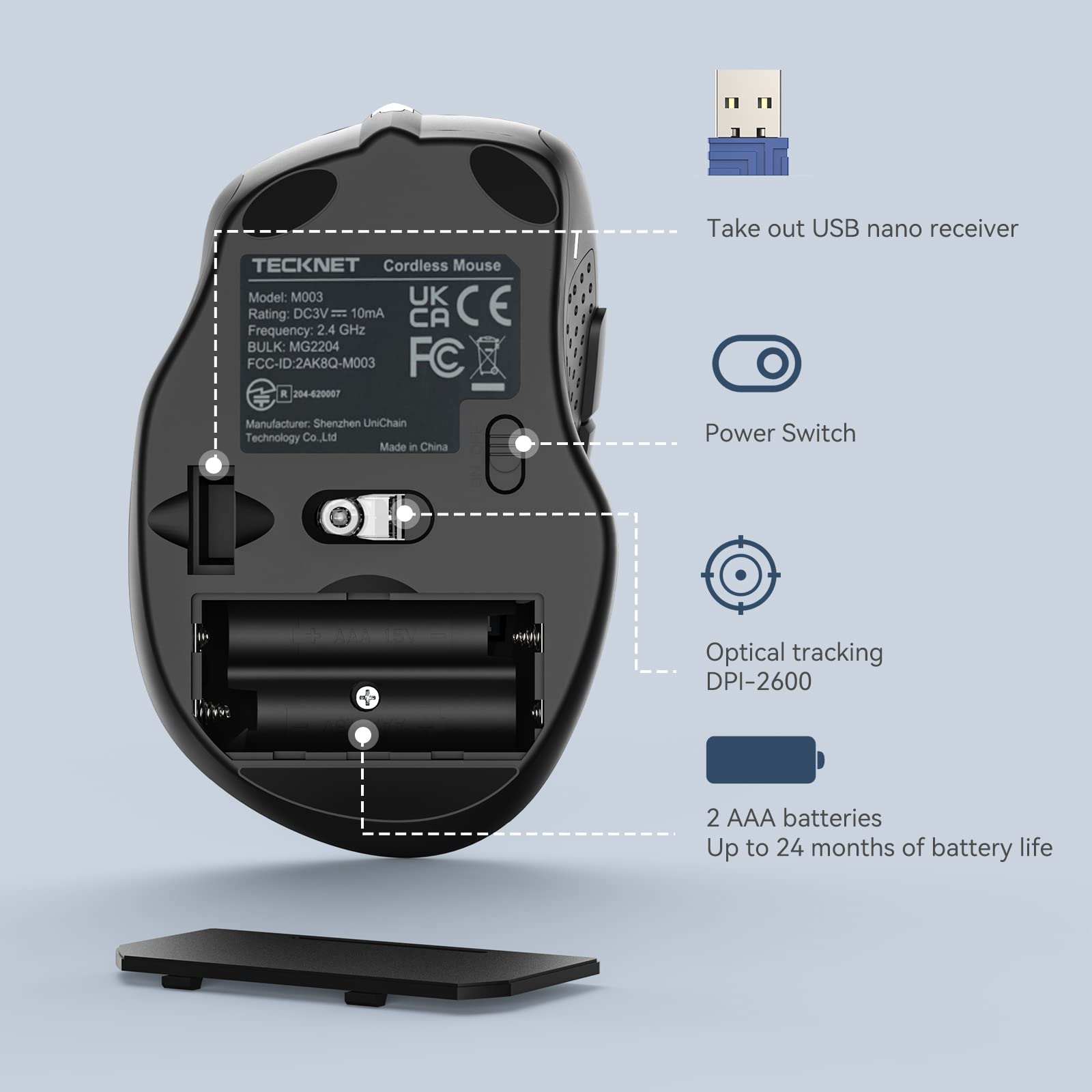 Details: TeckNet Pro 2.4G Ergonomic Wireless Mobile Optical Mouse with USB Nano Receiver for Laptop,PC,Computer,Chromebook,Macbook,Notebook,6 Buttons,24 Months Battery Life,5 DPI Adjustment Levels