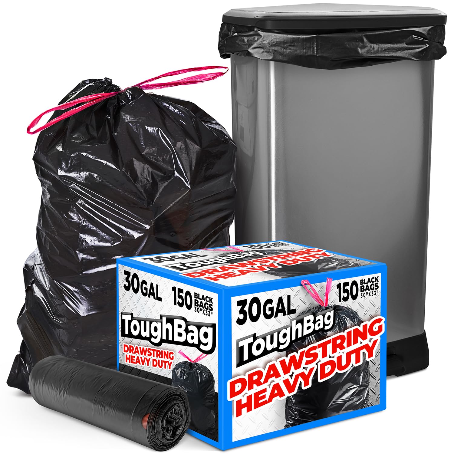 ToughBag 30 Gallon Trash Bags Drawstring (150 Count) Large Black Garbage Bags 30+ Gallon, Heavy Duty 30 Gallon Trash Bags for Kitchen, Commercial & LawnBrand: ToughBag