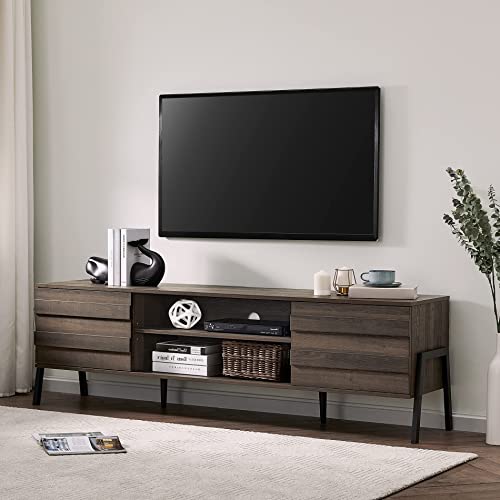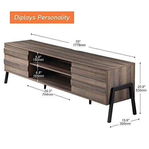 WAMPAT Mid-Century Modern TV Stand for TVs up to 75 inch Flat Screen Wood TV Console Media Cabinet with Storage, Home Entertainment Center in Brown for Living Room Bedroom, 70 inch