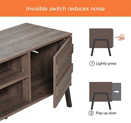 - 【Ample Storage & Practical】Our space-saving tv console helps make your home feel lived in and neat. Featuring the height adjustment of open shelf, you can adjust its height by removing the board directly according to your needs. Table top for your family portrait, decorations, plant, ect. Push-to-open cabinet door is easy to switch, but offers additional secluded space to protect your privacy.