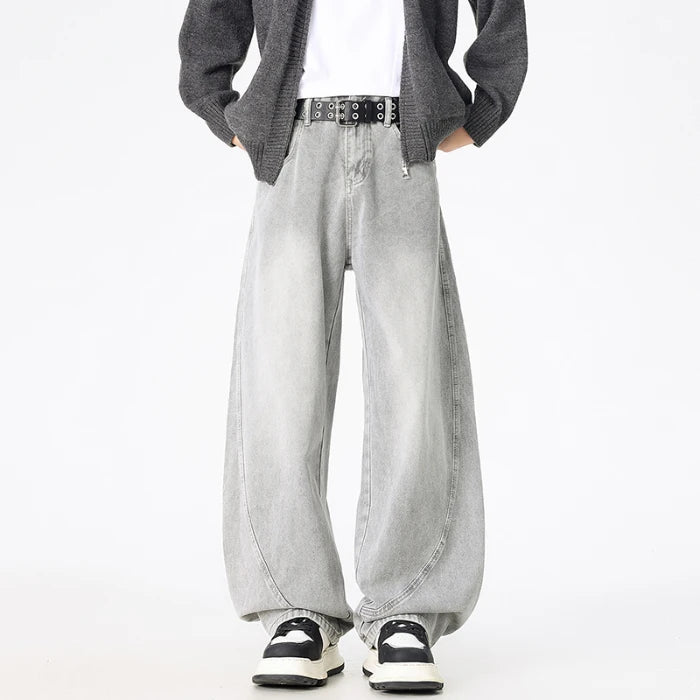 Wide Leg Denim Pants Male Jeans Loose Cowboy Mopping Trousers Baggy Men's Jeans Fashion Handsome Washed Streetwear Four Seasons